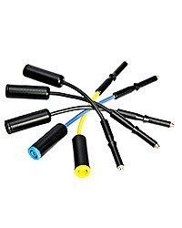 Представляют из себя изолированные проводники в изоляции из силикона и пластика. Одна из сторон адаптеров имеет стандартный разъем типа «банан» для подключения к проводникам измерительного прибора. Другая сторона представлена резьбовой втулкой, которая ввинчивается в доступные резьбовые клеммы типа M4 или M6 автоматических выключателей, шин или другие токопроводящие части электроустановки. Максимальный рабочий ток – 1 А, максимальное напряжение – 1000 В. Предназначены для использования с анализаторами качества электрической энергии серии PQM. Комплект – 5 шт.